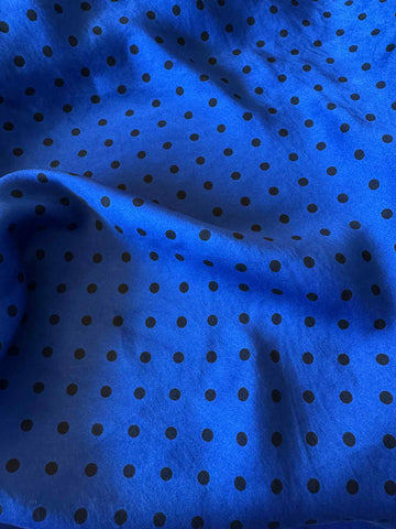 Sapphire Blue & Black 3/16" Polka Dots - Hand Dyed Silk Charmeuse Fabric